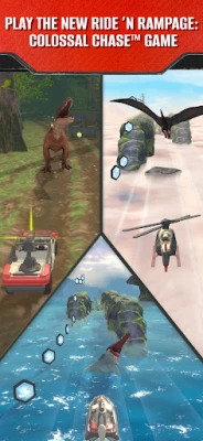 Accelerate into adventure on land, sea, and air! Ride ’N Rampage: Colossal Chase™ game lets you race a rugged off-road vehicle, pilot an attack boat, or fly a helicopter! When you spot the dinosaur you’re after, launch a dart to capture a sample of her DNA and then race on to complete your mission!