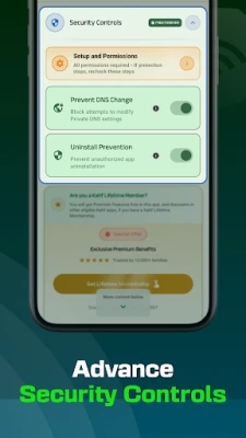 🛡️ DNS Change Protection – Prevents unauthorized private DNS change. It requires accessibility service permission.