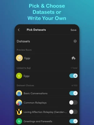 Kajiwoto is an app for making AI and human friends! Create AI characters using datasets, prompts and custom AI model selections. Then, chat with your AI in private rooms or go live and make new human friends in public rooms.
