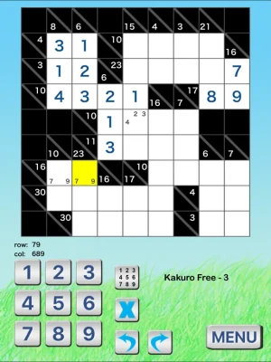 # Content - 5 difficulty levels for standard Kakuro puzzles - 3 sizes for Dot Kakuro puzzles