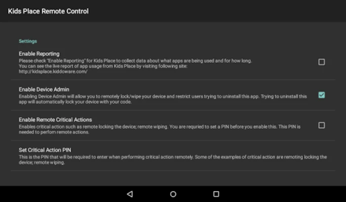 2. Force Lock: Required for remotely locking the device from Kids Place Cloud Console.