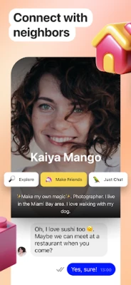 - Start a chat instantly with people around you, whether one-on-one or in community threads.