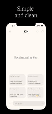 + Built with memory in mind – Kin remembers what matters and connects past conversations to new insights.