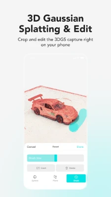 • Edit: Refine 3D models with editing tools; adjust your files in Photo Scan, Featureless Object Scan, and 3D gaussian splats.