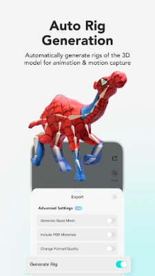 • Formats: Export in OBJ, STL, FBX, GLTF, GLB, USDZ, PLY, XYZ, compatible with Blender 3D, Unreal Engine, Autodesk Maya, etc.