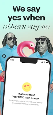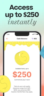 *Not all users will qualify. Advances range from $25 - $250, avg advances $93. Express transfer fees may apply.