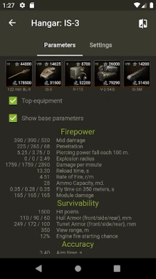 Detailed information on the tanks of all nations. Detailed parameters of chassis, radios, engines, turrets and guns, compatible equipment and consumables. Includes data of premium and gift tanks.