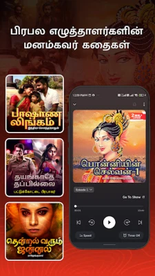 Listen to audiobooks and audio stories in Tamil and 6+ other regional languages across 15+ genres.