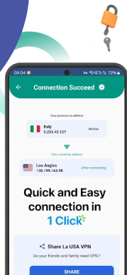 Browse freely and securely with La USA VPN. Get a USA IP in one click to access restricted sites and apps. Enjoy unlimited VPN service with no registration or traffic limits. Our secure connection uses OpenVPN and V2ray technology with OpenSSL key 2048 bits for maximum privacy.
