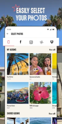 - Upload your photos from your smartphone, Instagram feed, Facebook, Google Photos, or Dropbox.