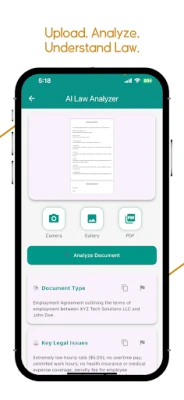 Upload photos of contracts or documents — get instant clause analysis and legal insights.