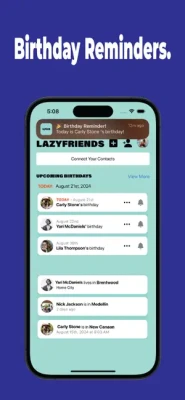 Notifications: Smart notifications for birthdays, nearby friends, and new friend requests. Lazyfriends lets you decide when and where you want to connect, putting you in full control of your social interactions.