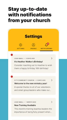 Stay Up-to-Date with Notifications from your Church. Stay in the loop with real-time push notifications from your church. Receive updates, announcements, and important messages, so you're always connected and informed about what's happening.