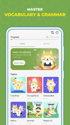 Integrated grammar within vocabulary lessons to help you understand and use them naturally.