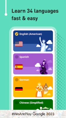You can learn 34 languages: English, American English, French, German, Italian, Spanish, Romanian, Russian, Arabic, Bulgarian, Catalan, Chinese, Traditional Chinese, Croatian, Czech, Danish, Dutch, Finnish, Greek, Hebrew, Hindi, Hungarian, Indonesian, Japanese, Korean, Norwegian, Polish, Portuguese, Brazilian Portuguese, Slovak, Swedish, Thai, Turkish, Ukrainian.