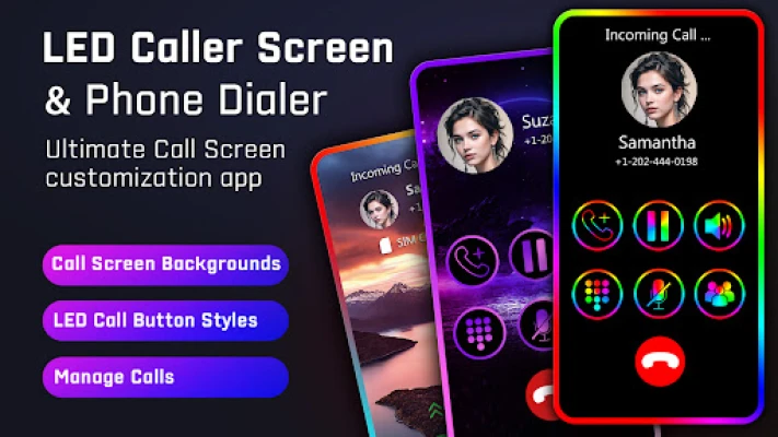 Welcome to LED Caller Screen with Phone Dialer App – your ultimate phone dialer and caller screen customization app. Just replace your boring default, standard phone dialer app with LED Call screen Phone Dialer App and enjoy LED Light effects on your caller screen and call buttons along with a highly personalized and user friendly calling experience, customizable calling backgrounds and lot of other smart features. LED Caller screen app adds beautiful rotating LED light effect on the borders of the calling screen as well as the call buttons making your calling screen experience truly colorful.