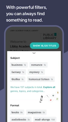 • Borrow and enjoy ebooks, audiobooks, and magazines