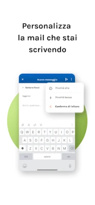 Consenti l’accesso alla rubrica del telefono per attivare la funzionalità di suggerimento dei destinatari quando stai scrivendo una mail. Abbiamo anche inserito un comodo pulsante “+” posizionato accanto al destinatario della mail che stai scrivendo per permetterti di accedere in modo rapido e veloce ai contatti della tua rubrica
