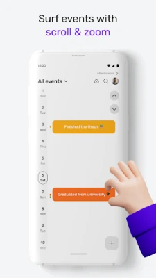 Story timeline creator provides the ability to quickly look back and navigate events and dates. This is achieved by zoom and scroll capabilities of the journal app. With just a few gestures you can easily time hop to any date or time of lifetime, which is perfect for creating your own dream journal or travel journal notebook. There is an ability to track events both in the general timeline and in other stories you've created (for example, business timeline, travel timeline, etc.).