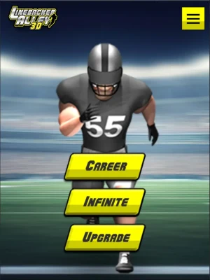 Rush for yards and glory! Swipe left and right to dodge linebackers or swipe down to perform a spin move when you can. Swipe up to jump over oncoming obstacles or to collect spin moves. Don't run into the water jug, unless you like being chased be a determined backer. You have the option to run in a single endless game called "Infinite." A career option is also available where you can climb the ranks from youth to high school, then college, pro, and maybe even the Hall of Fame!
