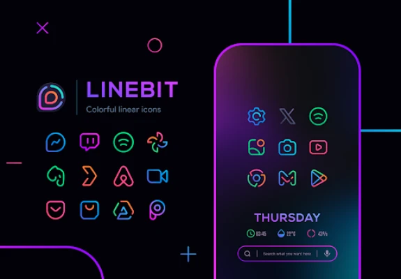 Live a new experience with these beautiful linear icons. Apply them and enjoy an illuminated screen with vibrant colors.