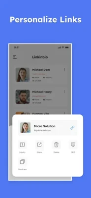 Easy to add any social media or external links Easy to customize profile Showcase your portfolio easily Easily to view new inquiries Easily manage your link SEO settings.