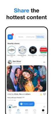 Browse the LITT social network Newsfeed to stay up to date with your friends and followers, post, chat and share AR stories, connect with local businesses and events, and discover more about your neighborhood.