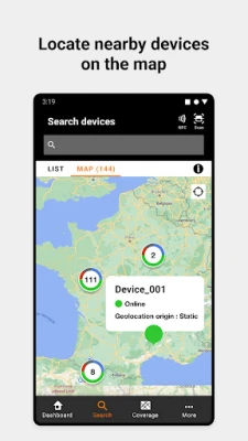 - locate devices nearby on the map and access directly to the detail of the device