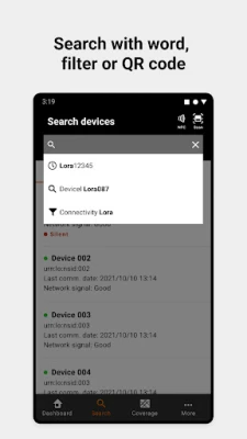 - access to the global view of the fleet of devices by connectivity (status, silent, group)