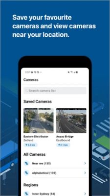 - Strategically located traffic camera images updated every 60 seconds, which you can save for quick access.