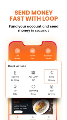 Ditch bank lines with LOOP’s mobile banking. Manage money anytime, with the freedom of modern financial management. Enjoy access and transactions on the go with LOOP, ensuring that your financial information is always at your fingertips. Top up your account at any time using Mpesa or by linking your current bank ATM card