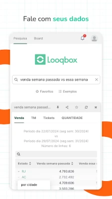 Com ajuda da nossa Inteligência Artificial, acelere a transformação de dados em resultados acessando as informações de sua operação de qualquer lugar. Obtenha insights e navegue em seus dados de forma simples e rápida com o poder do Looqbox.