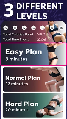 Choose from arm workouts, leg workouts, butt workouts, belly fat loss workouts. All different and easy. Customize your own exercise schedule. Keep your body healthy and fit!