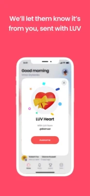 But LUV App isn't just about buying and sending gifts and tips. It's also about connecting with friends, loved ones and strangers alike by sending LUV. You can use LUV App to spread LOVE in a unique and fun way.