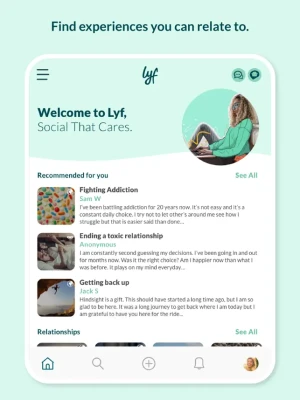 Lyf is free and always will be for discussing and receiving support from fellow Lyfers. We also offer internal links to our companion app, Lyf Support, now available in the App Store. 24/7 text based chat to mental health experts for professional guidance, no appointments needed. It’s our way of making therapy accessible and affordable to everyone.