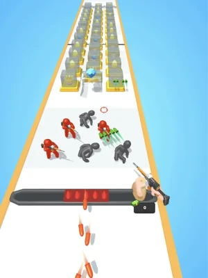 -Upgrade your magazine by going through the doors-Collect bullets and upgrade your guns-Get to the finish line by avoiding the obstacles