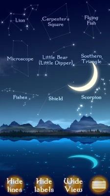 * Enjoy the view of your nightly sky! For all your restored constellations, you can show their latin or english names as well as the constellation lines.