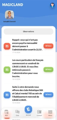 L'application Magicland mobile permet au parent d'être à côté de son enfant: suivre les activités pédagogiques, recevoir des conseils du cadre de l'école, être à jour pour les évènements culturels et sportifs. Contacter l'administration de l'école, recevoir les bulletins des notes, ....Magicland Mobile c'est être informé là où vous êtes... Cher parent Magicland télécharger Magicland Mobile et entrer votre identifiant et mot de passe disponible par sms ou à l'administration de l'école.