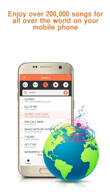 * Provides an extensive music library of more than 200,000 songs in a variety of languages