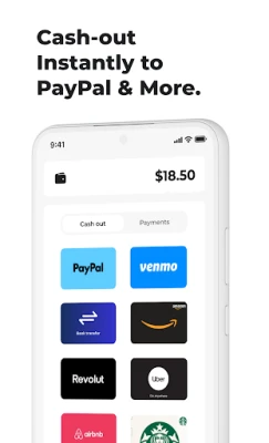 Instant cash outs to PayPal, Venmo, Bank Transfer and Gift Cards!