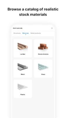 - Add standard material like 2x4 lumber, plywood, metal tubing, glass