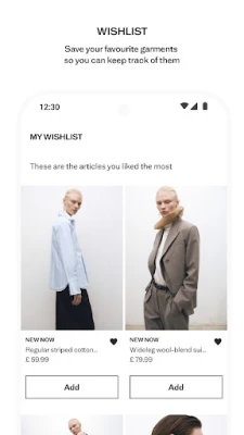 If you need to have the garment you want right now, use the geolocation feature of our app and find your nearest store and the quickest way to get there. Create your Wishlist. Now, your Wishlist, in a single click: include all the garments you like most in your Wishlist. Also, if you didn't manage to buy a garment in time, you can enable an availability notification.