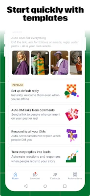 - Prebuilt automations for posts, comments, messages, and stories