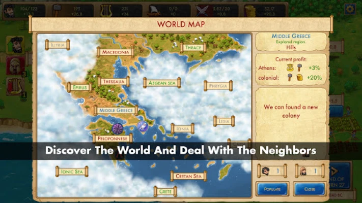 Together with the citizens, you will have to fight in ancient battles against various invaders, deal with domestic conflicts, survive natural disasters in order to unite the whole Ancient Greece under your rule, and conquer the entire known world from Northern Africa to North Europe.