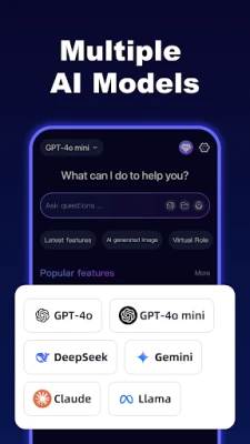 Multiple Model Options: Flexibly switch between ChatGPT, Claude, Gemini, DeepSeek and other leading AI modelsMultilingual Support: Communicate seamlessly in over 500 languages worldwideNatural Conversation: Enjoy a fluid experience like chatting with a friendUnlimited Topics: Comprehensive coverage from professional knowledge to casual chat