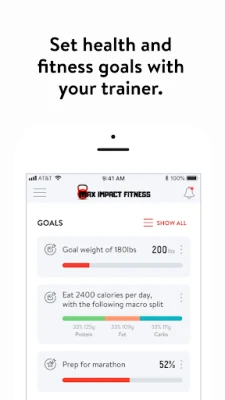 With the MAX IMPACT Fitness App, you can start tracking your workouts and meals, measuring results, and achieving your fitness goals, all with the help of your personal trainer.
