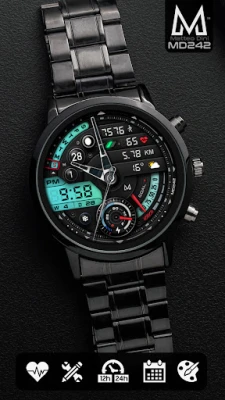 It contains 3 Preset App shortcuts, 2 customizable shortcuts, steps, heart rate + intervals, date, 2 customizable complications where you can have the data you prefer such as "barometer", "weather", distance walked (etc) changeable colors and more.