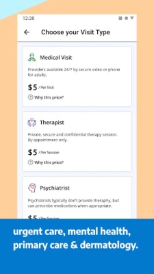 You can schedule an appointment at a time and day that's convenient for you or have an on-demand visit in around 15 minutes.