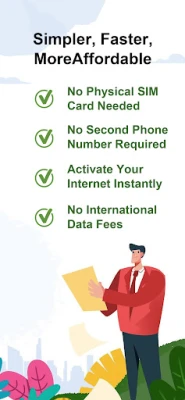 • Download, activate, and connect instantly—no physical SIM required