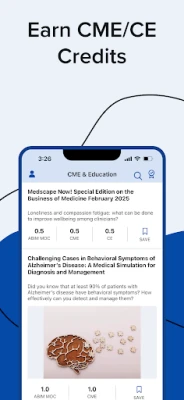 * Earn free CME/CE credits and ABIM MOC points on the go, and monitor your progress with our built-in Activity Tracker.